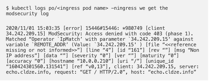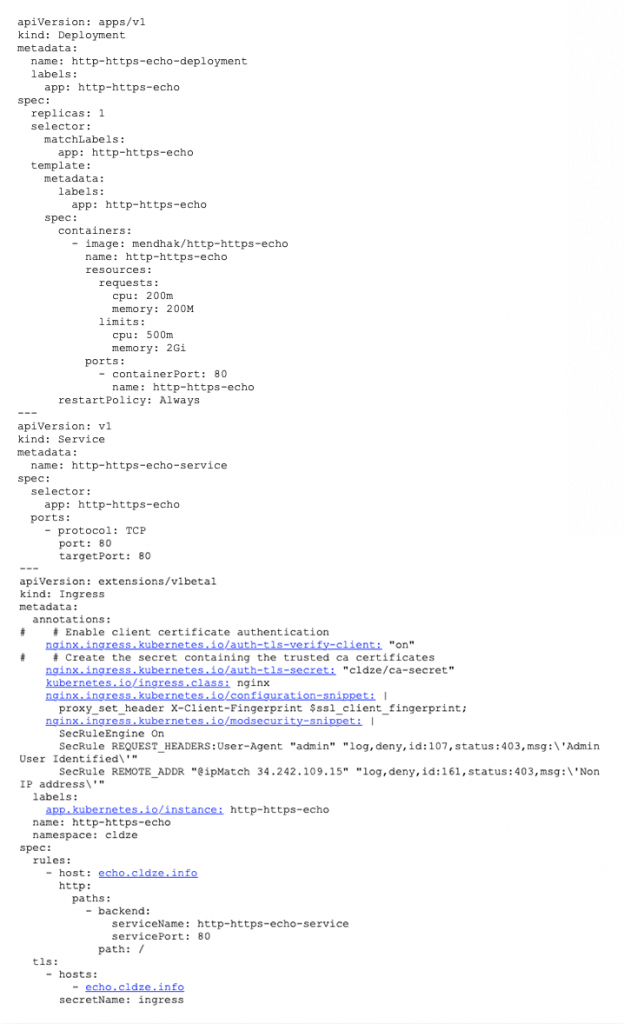 - Now that we have the Ingress-NGINX Controller up and running, let’s deploy our app into AKS. The app will just echo back to us with HTTP request properties. We also deploy the service and Ingress in the same yaml stack. Each of the ModSecurity and configuration annotation snippets will demonstrate one of the capabilities that our use case needs.