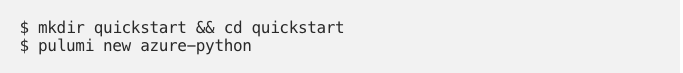 Let’s start by installing AKS (client requirement 1) with Pulumi, a rising star in the IaC world which uses familiar language code, like Python, Typescript, GO, and more.