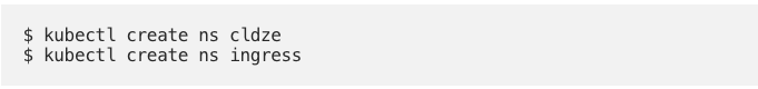 - Now, we create two namespaces – one for the application, and one for the Ingress-NGINX
