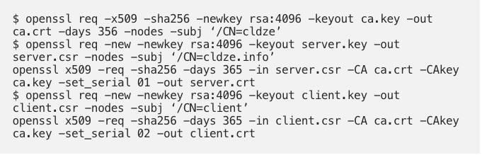 - Next, we have to create self-signed certificates for the client verification -mTLS (client requirement 3). (See this blog for more information about how to do this)